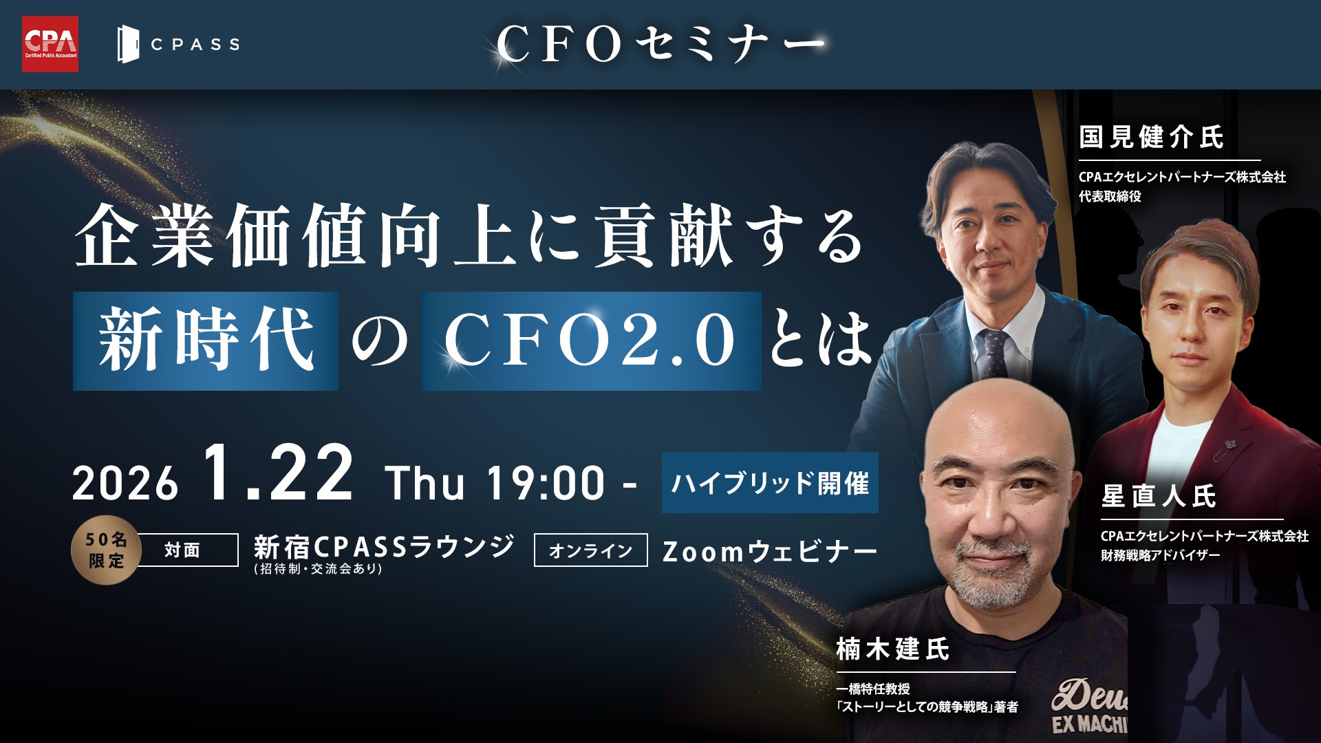 弊社と資本提携したCPAエクセレントパートナーズ※が主催するCFOセミナーのご案内です。